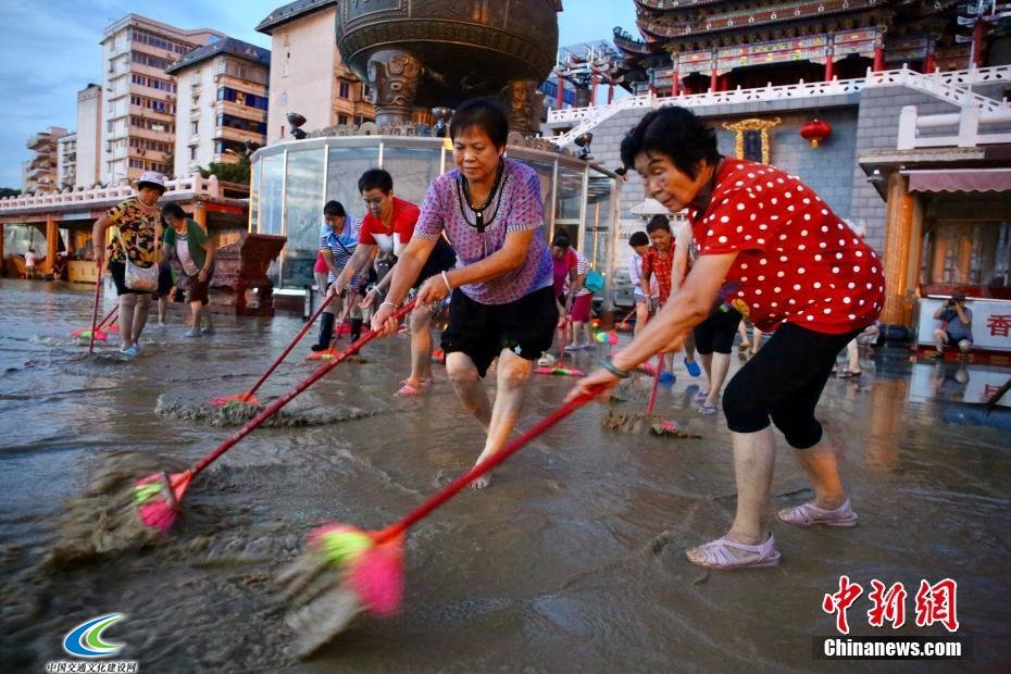 8月16日,随着洪水的退却,广西柳州市各部门开始进行清淤工作。朱柳融 摄来自柳州市龙福民间艺术团的100多名五旬以上大妈组成清淤团,自愿到该市滨江西...... [详细]