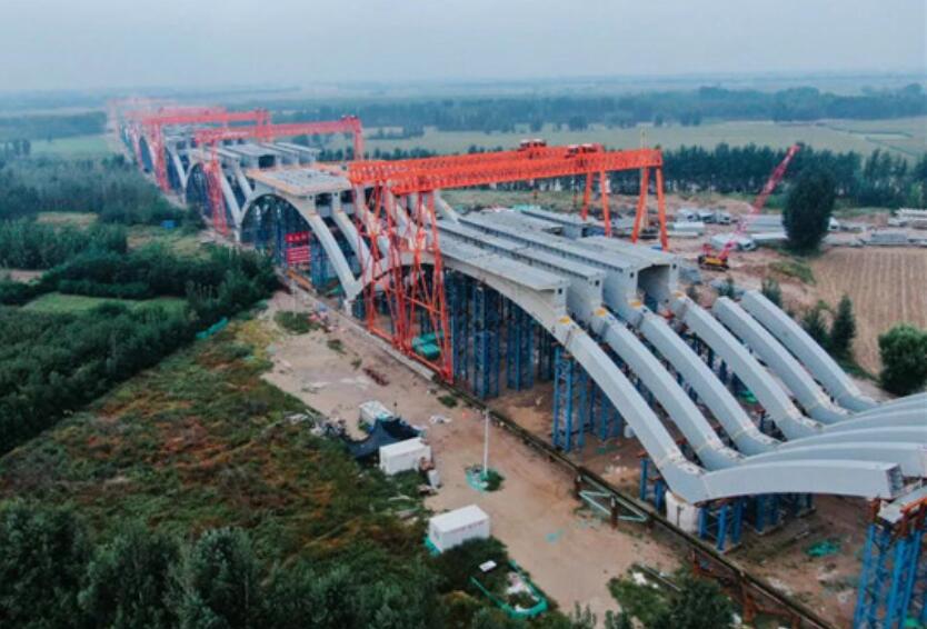 京雄高速仿颐和园造型十七连拱桥白沟河特大桥主拱圈合龙