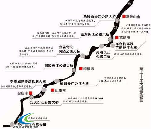 八百里皖江目前可走的长江大桥只有4座,很快这一数字将要翻倍,目前安徽省在建、已建跨江大桥已达10座。记者现场采访获悉,望东长江公路大桥的南北主塔已封顶,明年底前建成通车;芜湖长江公路二桥主塔施工已出江面十多层楼高,主塔明年7月封顶,2017年底全线建成通车。