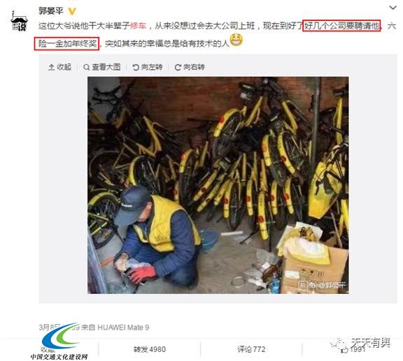 不少共享单车公司,大量招聘运维专员和修车师傅,创造了不少就业岗位。
