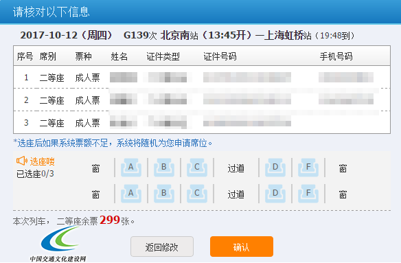 导语: 12306截图 记者从中国铁路总公司获悉,自2017年10月12日起,铁路部门推出“接续换乘”方案推荐及动车组列车“自主选座”两项便民服务新举措,进一步改善旅客出行体验。 中国铁路总公司有关部门负责人介绍,10月12日起,旅客通过12306网站或手机客户端购票,当遇到出发地和目的地之间的列车无票或没有直接到达的列车时,旅客可选择“接续换乘”功能,售票系统将向旅客展示途中换乘一次的部分列车余票情况,如果旅客选择购买,可以...