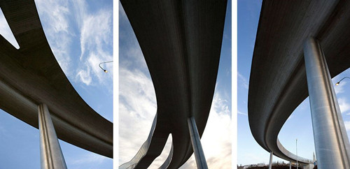 这座造型动感优美的混凝土人行天桥位于冰岛雷克雅未克首都新机场。混凝土壳体被设计的十分轻薄,弯曲的造型备具张力,桥柱相当细,整个桥体形态轻盈而灵活。