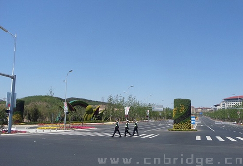 由十五局一公司承建的青岛蓝色硅谷城际轨道交通工程03标位于山东省青岛市崂山区,线路沿滨海公路西侧绿化带一直向北,沿株洲路、新源路、九水东路、金水路、世园大道、天水路至海信工业园,标段长7388米,共有五个高架桥区间和四个高架车站。公司管段正处于2014年青岛世界园艺博览会中心位置,其中世北区间E01、E02、E03号墩柱与世园大道相互交叉,是市区通向世园会主会场的必经之路,有多条世园快线途径施工沿线。