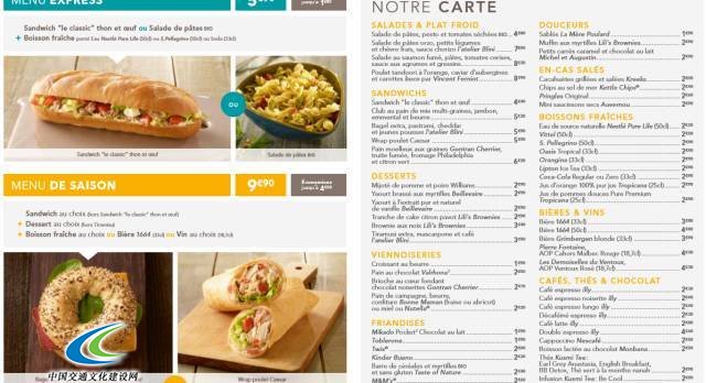 最关键的一点是,“高铁”快餐价格与火车站内的快餐店几乎持平,如果持有法国国营铁路公司的打折卡,如儿童卡、青年卡、老年卡等,购买套餐还可享受8.5折优惠!