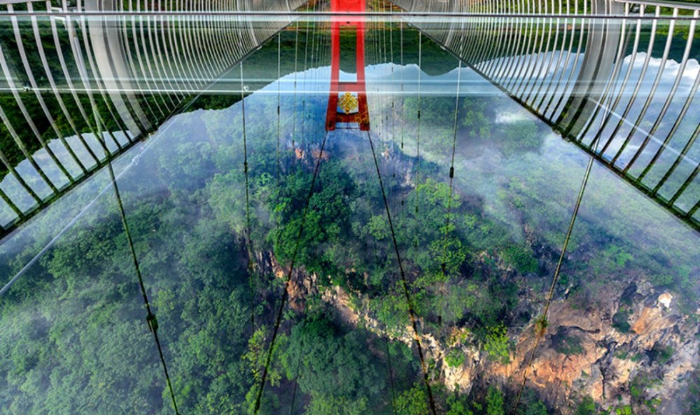 提到玻璃桥,大家首先会想到的是张家界大峡谷玻璃桥——云天渡。云天渡全长536米、宽6米,桥梁悬索主跨430米。大桥穿梭在大峡谷的云雾之中,令很多人胆战心惊,很多人都担心它的安全性,后来通过了锤砸检验,证明了大桥的质量。