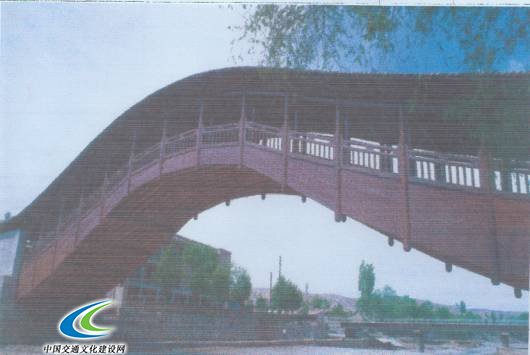 灞陵桥,桥上建屋为廊桥,又称风雨桥。位于甘肃省渭源县清源河上,建于公元1368—1398年。跨径27.4米。