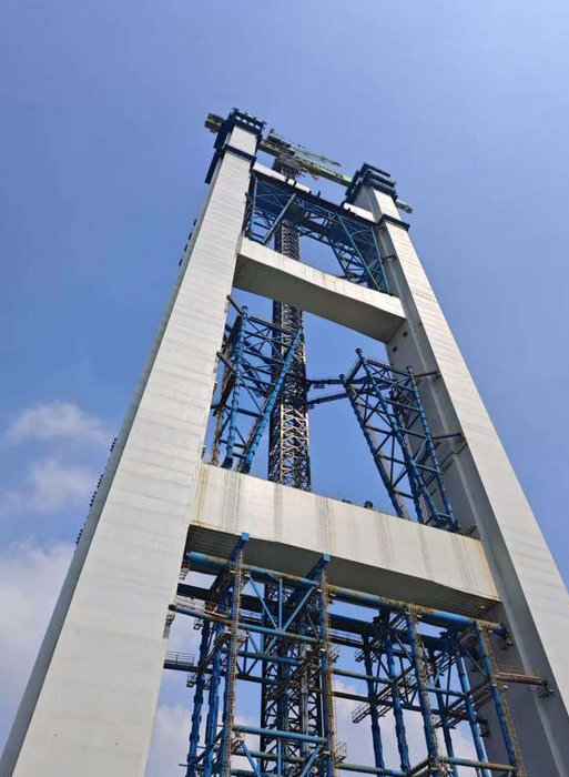 狮子洋通道主桥索塔建设高度突破200米