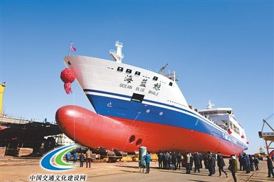 2016年12月6日,由山东渤海国际轮渡有限公司斥资建造的客箱船“海蓝鲸”号在山东省威海荣成巿石岛黄海造船有限公司船厂顺利下水。