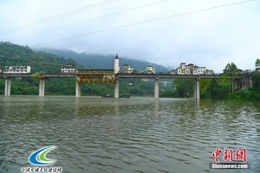 图为梨香溪溪流上的一座中西合璧的廊桥。