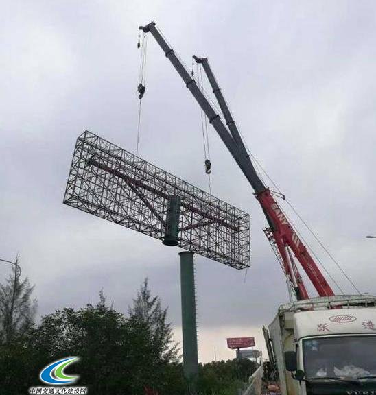 12月17日上午,在海南省公路管理局路政人员监督和省交警总队的协助配合下,G98高速公路K611龙昆南互通入口左幅的高立柱广告牌被安全有序地拆除完毕。这是该省交通部门开展拆除高速公路高立柱广告设施攻坚战的一个镜头。