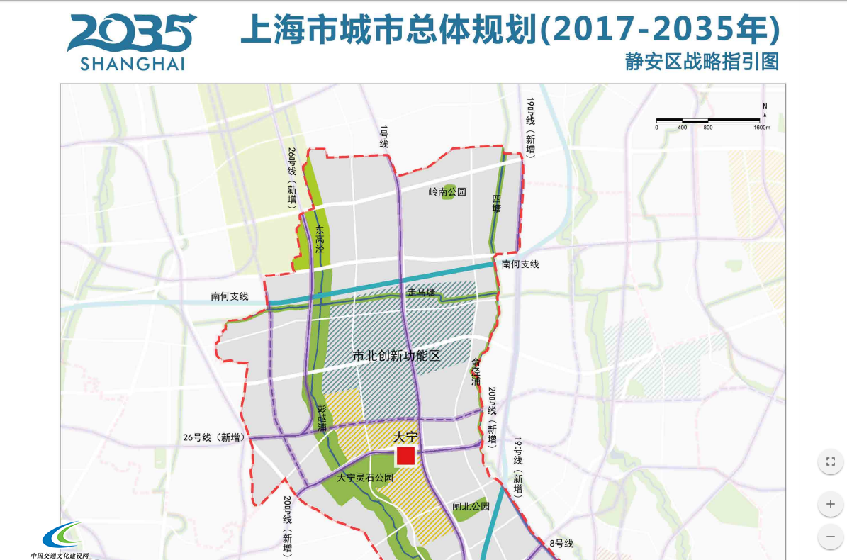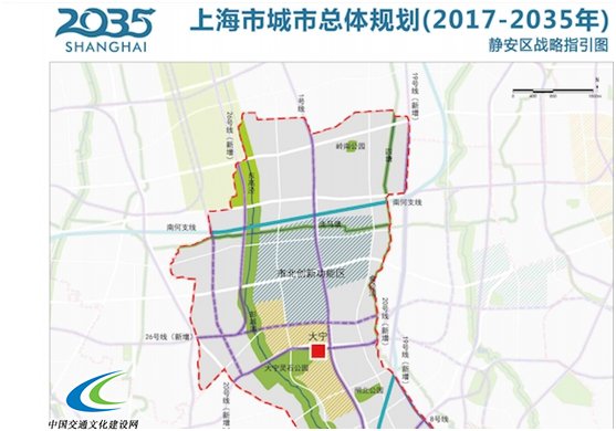 图片说明:静安区战略指引图中显示新增19号、20号和26号地铁线。(点击图片查看大图)