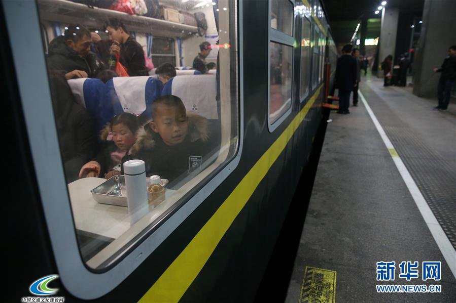 2月1日凌晨,吴可花小朋友和家人在北京站进站乘车,准备乘坐由北京站发往重庆北站的3603次列车。