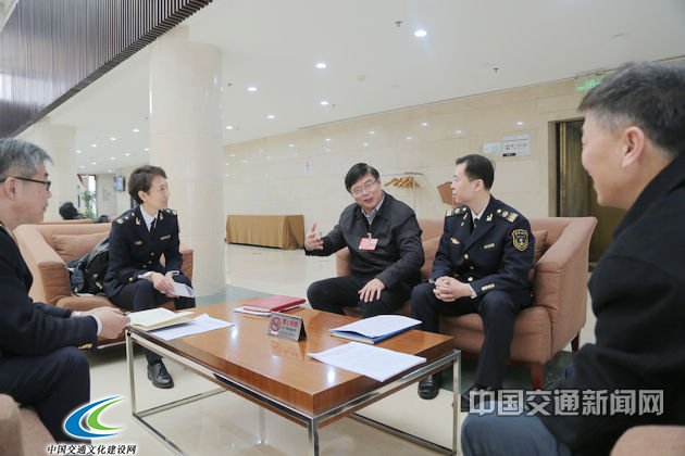 图为交通运输部相关部门人员与施卫东委员(中)共议解决思路。