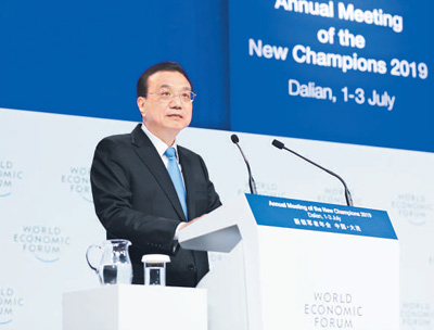 7月2日,国务院总理李克强在大连出席2019年夏季达沃斯论坛开幕式并发表特别致辞。