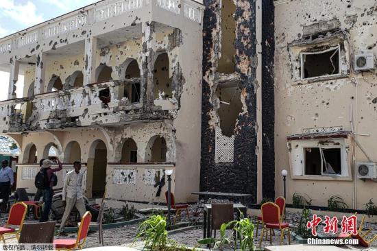 资料图片:当地时间7月12日,索马里港口城市基斯马尤的一家酒店遭受恐怖袭击,造成近数十人死伤。